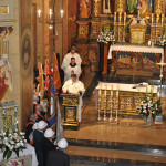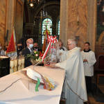W dniu 11 września br. uroczystej Mszy św. w intencji 40 rocznicy podpisania Porozumień Dąbrowskich przewodniczył proboszcz Sanktuarium Matki Bożej Łaskawej Patronki i Opiekunki Małżeństwa i Rodzin we Wrocławiu o. Radosław Kramarski (nasz były proboszcz) w koncelebrze z proboszczem Sanktuarium św. Antoniego z Padwy o. Sebastianem Traczem oraz proboszczem ks. kanonikiem Andrzejem Stasiakiem Duszpasterzem Ludzi Pracy z Bazyliki Najświętszej Maryi Panny Anielskiej w Dąbrowie Górniczej, który wygłosił okolicznościowe kazanie. Na wstępie tej uroczystości gospodarz Sanktuarium św. Antoniego z Padwy powitał wszystkich uczestników a wśród nich: Przewodniczącego Komisji Krajowej NSZZ “Solidarność” Pana Piotra Dudę, Sygnatariuszy Porozumienia Dąbrowskiego Pana Andrzeja Rozpłochowskiego, parlamentarzystów, członków zarządu NSZZ regionu Śląsko-Dąbrowskiego, Dyrektora IPN Pana Andrzeja Sznajdera (region Katowice) oraz licznie przybyłe poczty sztandarowe ” Solidarności” ludzi pracy i wszystkich gości przybyłych na te uroczystości. Na zakończenie Mszy św. przedstawiciele NSZZ Solidarności podziękowali o. Radosławowi Kramarskiemu za dotychczasową współpracę i życzyli wiele łask Bożych na nowej placówce we Wrocławiu. Na zakończenie uczestnicy uroczystości złożyli kwiaty przy Ołtarzu Ojczyzny i pod tablicą upamiętniającą zbrodnię katyńską.