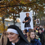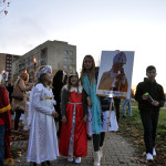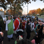 W wigilię uroczystości Wszystkich Świętych parafianie z franciszkańskiej „górki” po raz 6 zorganizowali „ Marsz Wszystkich Świętych” i przeszli ulicami naszej parafii.  Punktualnie o godz: 16.00 jak co roku wyruszyliśmy z pod kapliczki przy Szkole Podstawowej nr. 18 w Dąbrowie Górniczej – Gołonogu w barwnym korowodzie ulicami naszej parafii. Czyż nie jest to piękne świadectwo, że należymy do Kościoła, który trwa ponad 2000 lat. Idą dziadkowie, rodzice, młodzież i dzieci, aby podkreślić, że rodzina jest najważniejsza, rodzina to żywy Kościół. Dzieci, młodzież oraz rodzice przebrali się w stroje postaci naszych świętych, z pieśniami na ustach niosą naszych uwielbianych świętych; św. Franciszka założyciela zakonu Franciszkanów, św. Antoniego naszego ukochanego patrona parafii, św. Maksymiliana, który oddał życie za współwięźnia w KL Auschwitz, św. Jana Pawła II naszego polskiego Papieża, bł. Michała i Zbigniewa męczenników z Pariacoto.