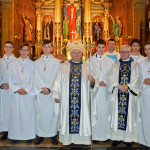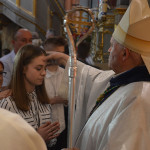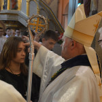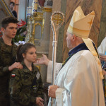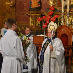 W dniu 31 maja w Święto Nawiedzenia NMP w parafii św. Antoniego z Padwy w Gołonogu Biskup pomocniczy diecezji Sosnowieckiej ks. Piotr Skucha udzielił 89 osobom Sakramentu Bierzmowania. Bierzmowanie jest sakramentem wtajemniczenia chrześcijańskiego, w którym ochrzczeni otrzymują pełnię Ducha Świętego, tak jak Apostołowie otrzymali Go w dzień Pięćdziesiątnicy. Bierzmowanie jest więc dopełnieniem łaski chrztu, daje jej wzrost i pogłębienie, ściślej jednoczy z Chrystusem dzięki Jego Duchowi, głębiej zakorzenia w synostwie Bożym, pomnaża dary Ducha Świętego otrzymane we chrzcie, udoskonala więź z Kościołem, udziela specjalnej mocy Ducha Świętego do mężnego wyznawania imienia Chrystusa oraz do szerzenia i obrony wiary słowem i czynem. W czasie uroczystej Mszy św. której przewodniczył i homilię wygłosił ks. Bp Piotr, w koncelebrze uczestniczyli proboszcz parafii o. Radosław Kramarski, o. Jacek Bielecki, o. Roman Janusz oraz Kanclerz Kurii Diecezjalnej ks. Mariusz Karaś oraz sekretarz biskupa Piotr Noga. W swoich słowach bp Piotr zachęcał do czytania Pisma Świętego, bo jest to źródło naszej wiary, które ukazuje nam także początki chrześcijaństwa. Wskazuje nam wartości za którymi powinniśmy podążać. Daje odp. na wiele pytań , poucza jak być lepszym człowiekiem. Ksiądz Biskup przypomniał, że kiedy przyjmujemy Ducha Świętego i pozwalamy mu działać, to sam Chrystus staje się obecny w nas i przybiera realne kształty w naszym życiu. Zwrócił uwagę, że z przyjęciem Ducha Świętego wiążą się wiara i umiejętność postępowania zgodnie z zasadami naszej wiary. – Wiara jest nam w dzisiejszych czasach niezwykle potrzebna. Duch Święty, którego przyjmujemy w sakramencie Bierzmowania umacnia, też w nas umiejętność postępowania zgodnie z zasadami naszej wiary – zaznaczył Biskup.