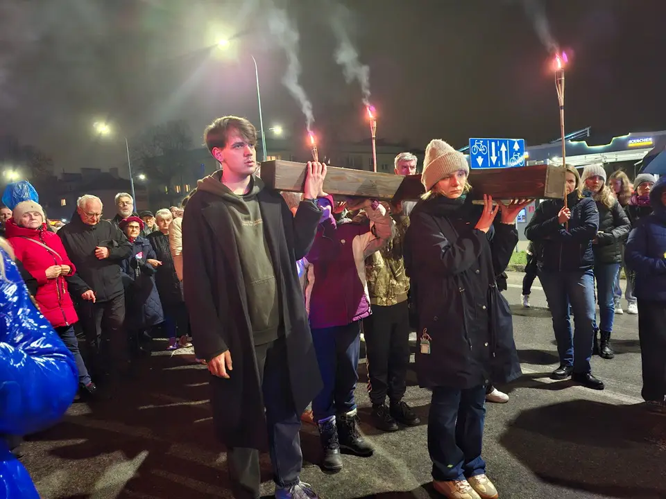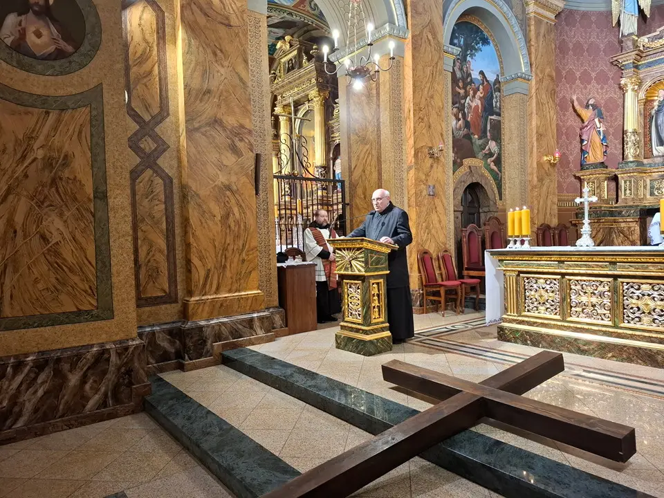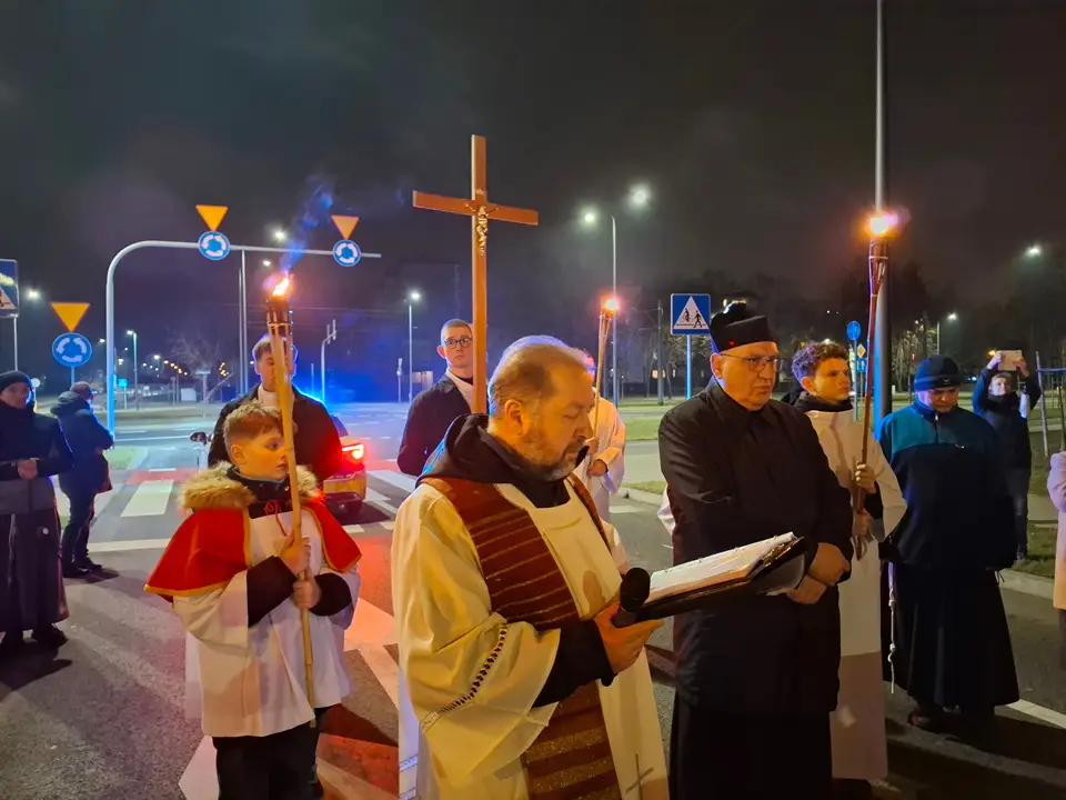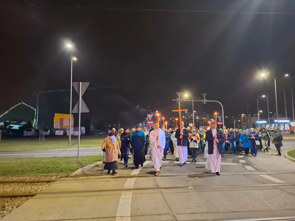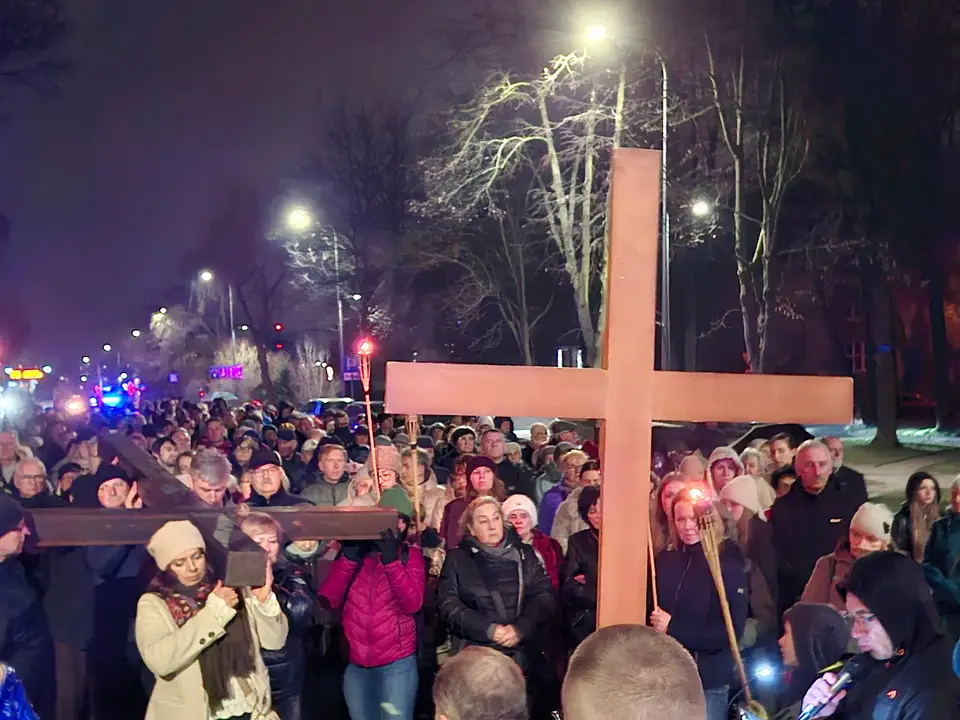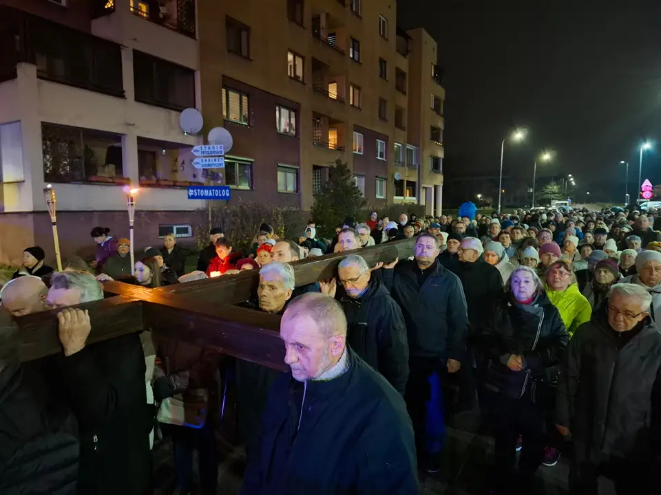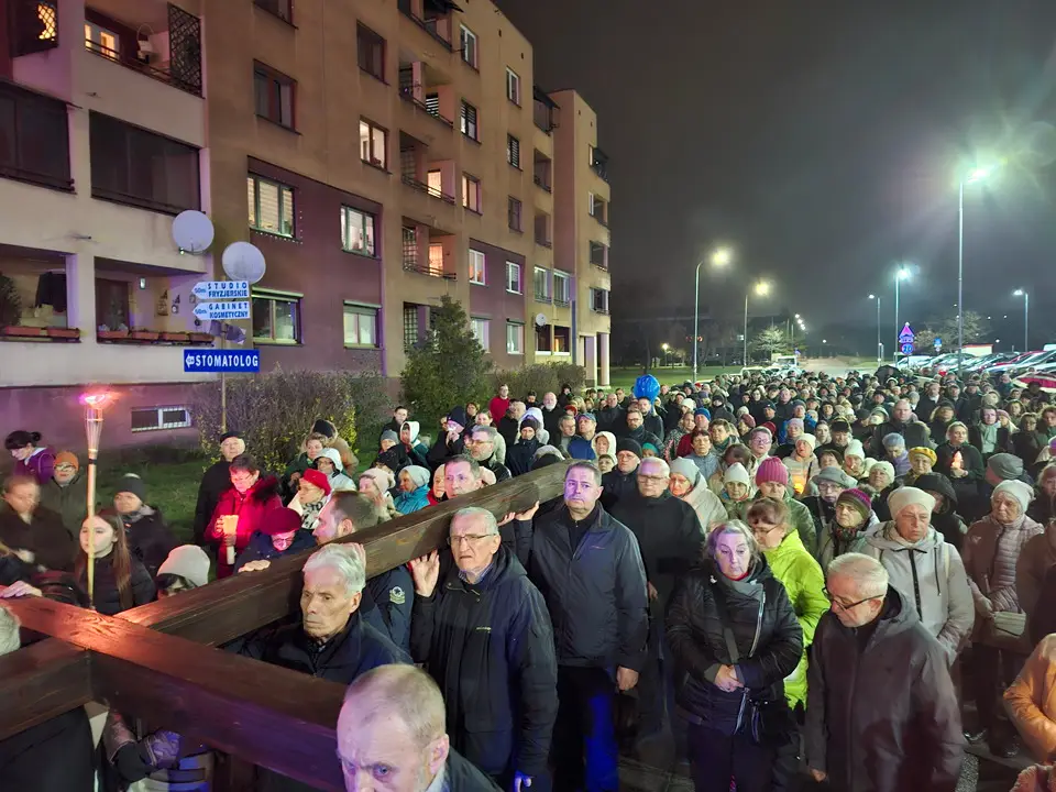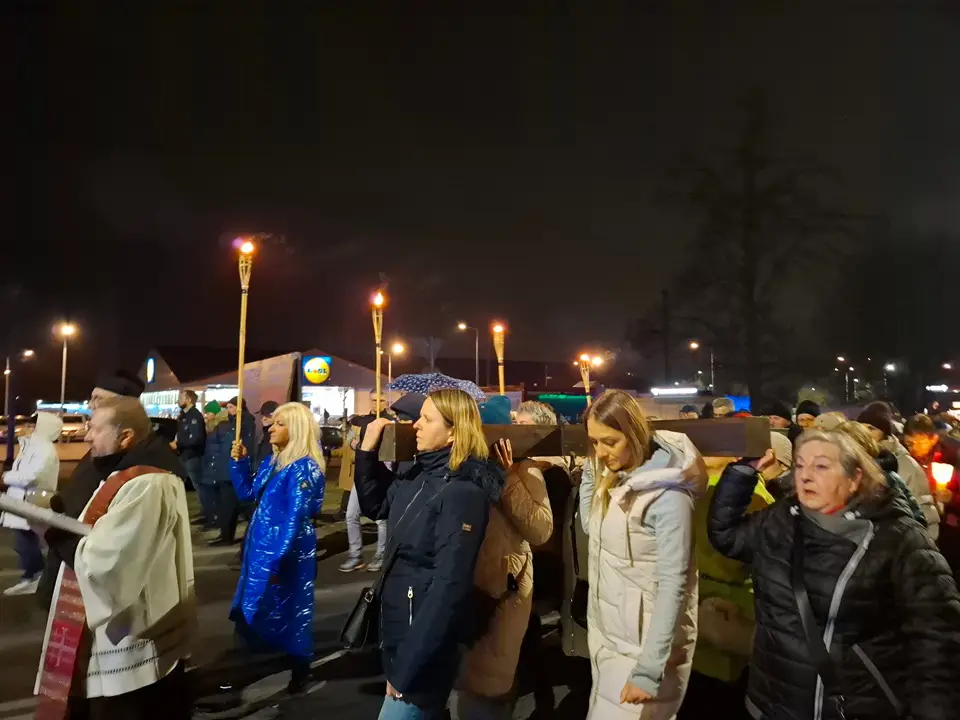 W piątek 20.03.2026 ulicami naszego Dekanatu odprawiliśmy Drogę Krzyżową. Uroczysta Msza św. w kościele p.w. Najświętszej Maryi Panny Królowej Polski rozpoczęła się o godz. 18.00 pod przewodnictwem o. Pawła Soleckiego proboszcza Parafii św. Antoniego z Padwy w Gołonogu, który także wygłosił homilię. Rozważania podczas drogi Krzyżowej i tajemnice Różańca świętego prowadził o. Paweł Solecki wraz z ks. Zdzisławem Reterskim – Dziekanem i proboszczem parfii p.w. Najświętszej Maryi Panny Królowej Polski oraz o. Dawidem Jeziorskim, wikariuszem z parafii św. Antoniego z Padwy. W Drodze Krzyżowej ulicami naszych parafii uczestniczyli również oo. franciszkanie z Sanktuarium św. Antoniego z Padwy oraz księża i wierni z naszego Dekanatu. W czasie Drogi Krzyżowej rozważaliśmy wszystkie bóle i cierpienia Chrystusa Pana, którego Ofiara krzyża, otworzyła nam wszystkim źródło zbawienia. Nie każdy człowiek godzi się na krzyż, kiedy go dostaje rozpacza, ale drugi człowiek potrzebuje krzyża aby zachować bliskość z Bogiem. „Jeśli chcesz iść za mną weź swój krzyż”. Czy jest ktoś, kto nie ma krzyża? Każdy człowiek ma swój krzyż, nieraz pod nim upada. Trzeba ten krzyż nieść za Jezusem, wtedy ten krzyż stanie się drogą powrotu do Boga, drogą przemiany, drogą zwycięstwa. Droga Krzyżowa zakończyła się w Sanktuarium św. Antoniego z Padwy. Ojcowie Franciszkanie podziękowali za trud podjęcia tej Drogi Krzyżowej ,danie świadectwa swojej wiary i przynależności do ukrzyżowanego Chrystusa. Odpowiedzialną Parafią za zorganizowanie całej Drogi Krzyżowej była Parafia św. Antoniego akcentując w ten sposób rok św. Franciszka z Asyżu.