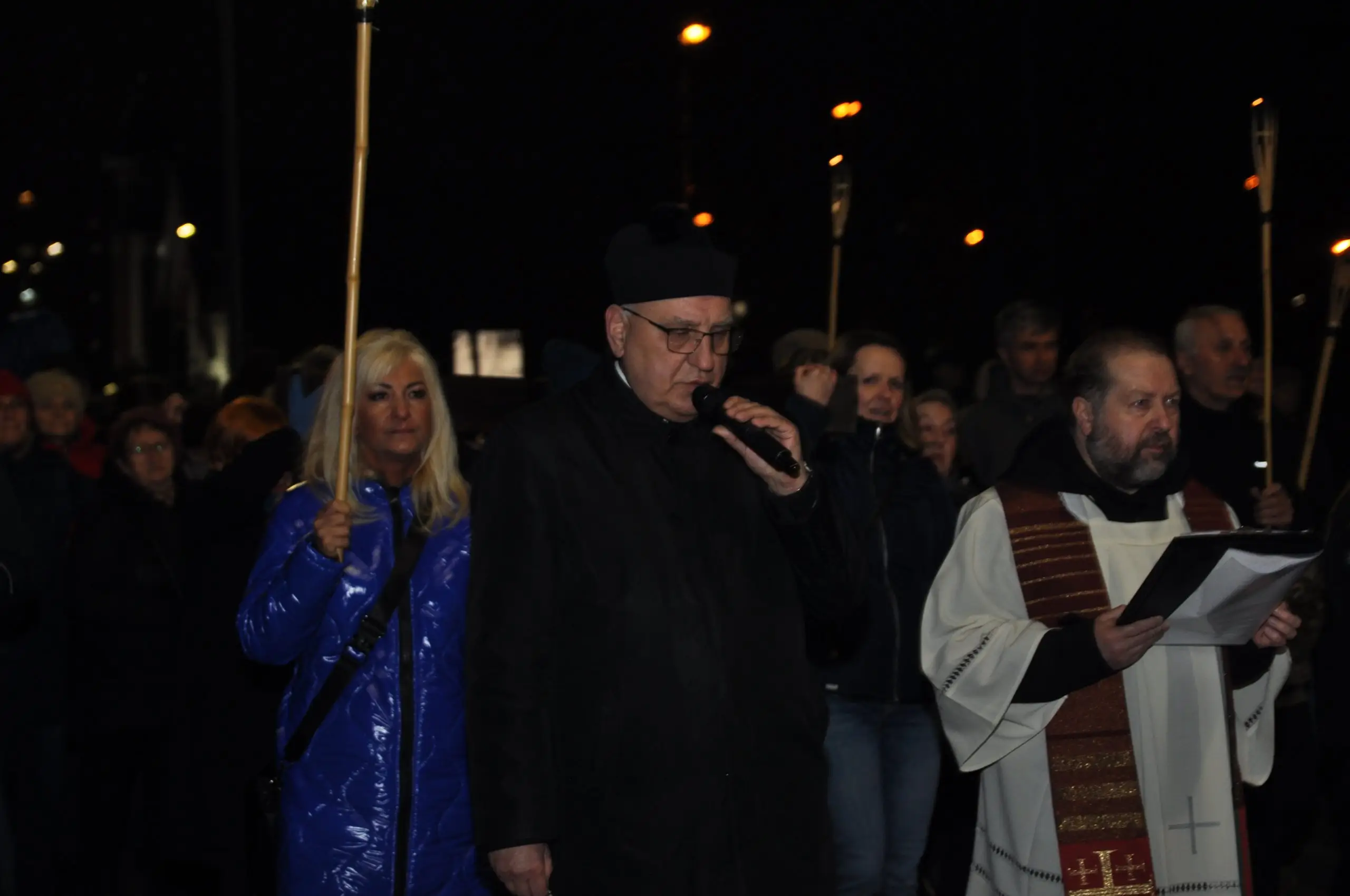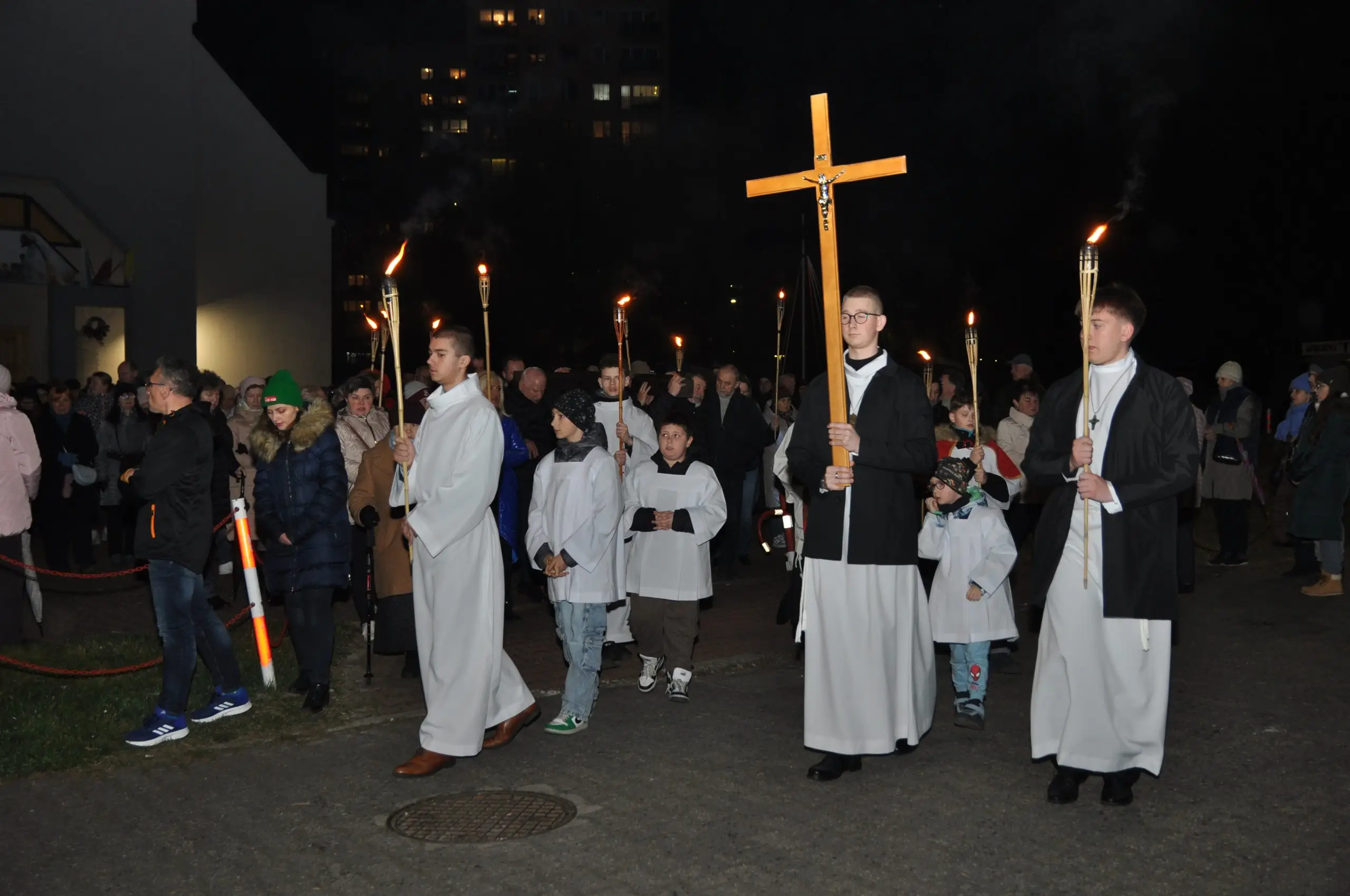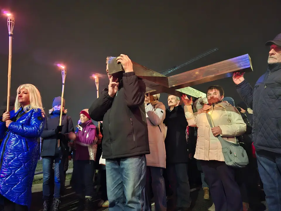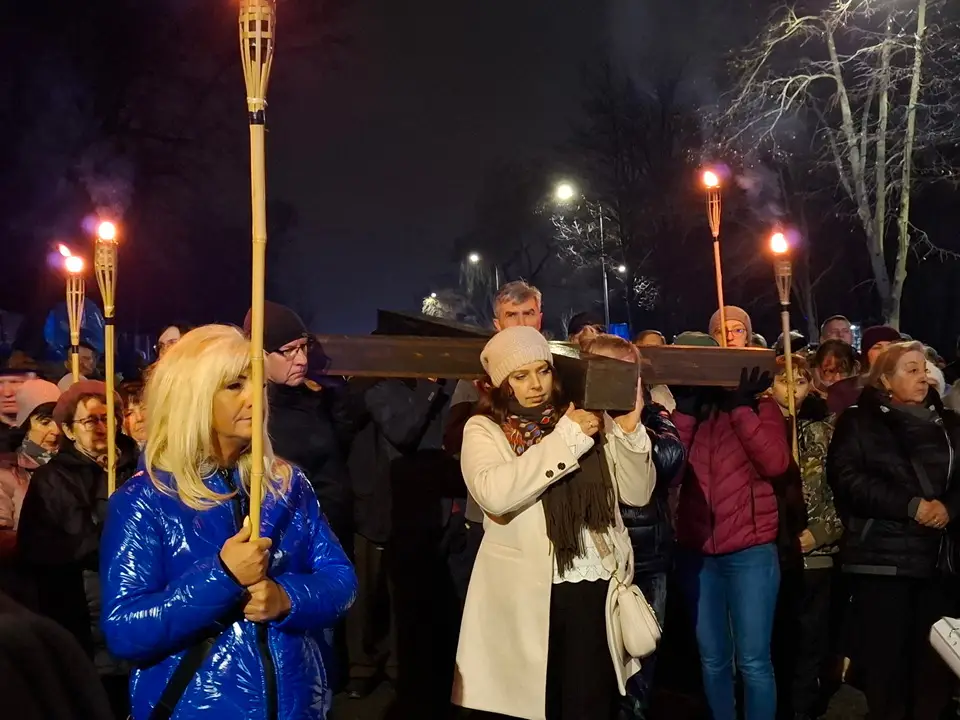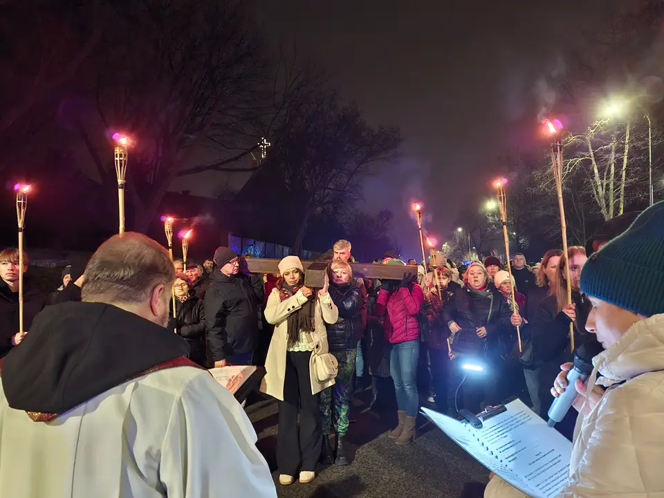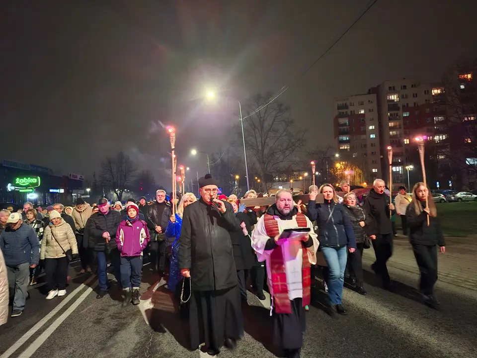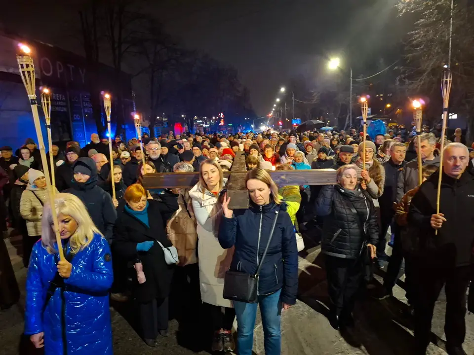 W piątek 20.03.2026 ulicami naszego Dekanatu odprawiliśmy Drogę Krzyżową. Uroczysta Msza św. w kościele p.w. Najświętszej Maryi Panny Królowej Polski rozpoczęła się o godz. 18.00 pod przewodnictwem o. Pawła Soleckiego proboszcza Parafii św. Antoniego z Padwy w Gołonogu, który także wygłosił homilię. Rozważania podczas drogi Krzyżowej i tajemnice Różańca świętego prowadził o. Paweł Solecki wraz z ks. Zdzisławem Reterskim – Dziekanem i proboszczem parfii p.w. Najświętszej Maryi Panny Królowej Polski oraz o. Dawidem Jeziorskim, wikariuszem z parafii św. Antoniego z Padwy. W Drodze Krzyżowej ulicami naszych parafii uczestniczyli również oo. franciszkanie z Sanktuarium św. Antoniego z Padwy oraz księża i wierni z naszego Dekanatu. W czasie Drogi Krzyżowej rozważaliśmy wszystkie bóle i cierpienia Chrystusa Pana, którego Ofiara krzyża, otworzyła nam wszystkim źródło zbawienia. Nie każdy człowiek godzi się na krzyż, kiedy go dostaje rozpacza, ale drugi człowiek potrzebuje krzyża aby zachować bliskość z Bogiem. „Jeśli chcesz iść za mną weź swój krzyż”. Czy jest ktoś, kto nie ma krzyża? Każdy człowiek ma swój krzyż, nieraz pod nim upada. Trzeba ten krzyż nieść za Jezusem, wtedy ten krzyż stanie się drogą powrotu do Boga, drogą przemiany, drogą zwycięstwa. Droga Krzyżowa zakończyła się w Sanktuarium św. Antoniego z Padwy. Ojcowie Franciszkanie podziękowali za trud podjęcia tej Drogi Krzyżowej ,danie świadectwa swojej wiary i przynależności do ukrzyżowanego Chrystusa. Odpowiedzialną Parafią za zorganizowanie całej Drogi Krzyżowej była Parafia św. Antoniego akcentując w ten sposób rok św. Franciszka z Asyżu.