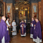 Obchód Dnia Zadusznego zainicjował w X w św. Odylon – czwarty opat klasztoru benedyktyńskiego w Cluny (Francja). Początkowo pielęgnowały ten dzień klasztory benedyktyńskie, ale wkrótce za ich przykładem poszły także inne zakony i diecezje. W XIII w. święto to objęło cały Kościół zachodni a w wieku XIV zaczęto urządzać procesję na cmentarz do czterech stacji. Piąta stacja odbywała się już w kościele. Przy stacjach odmawia się modlitwy za zmarłych i śpiewa pieśni żałobne. W Polsce tradycja Dnia Zadusznego sięga XII w., a z końcem wieku XV była znana w całym kraju. Za pobożne odwiedzenie cmentarza w dniach od 1 do 8 listopada i jednoczesną modlitwę za zmarłych można uzyskać odpust zupełny który ofiarujemy za jedną duszę dziennie. W naszym Sanktuarium św. Antoniego z Padwy w dniu 2 listopada w Wspomnienie Wszystkich Wiernych Zmarłych modliliśmy się podczas wieczornej Mszy św. której przewodniczył i homilię wygłosił o. Paweł Solecki, w koncelebrze z Proboszczem o. Sebastianem, Wikariuszem naszej parafii o. Piotrem, oraz o. Adamem i o. Romanem. Podczas Mszy św. modliliśmy się w pięciu stacjach za wszystkich wiernych zmarłych.