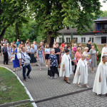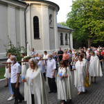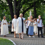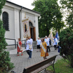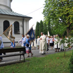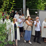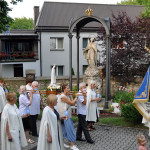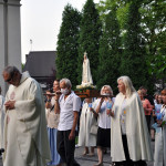 Po zakończeniu Mszy św. Rozważania Różańca Świętego poprowadził o. Sebastian wraz z członkami Rycerstwa Niepokalanej z naszej parafii. Po zakończeniu modlitwy różańcowej ruszyliśmy z procesją dookoła kościoła niosąc figurkę Matki Bożej Fatimskiej.
