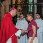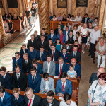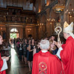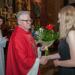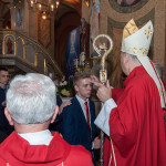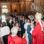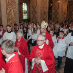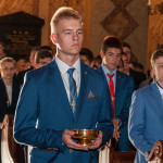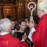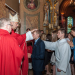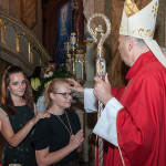 28 Maja 2018 roku ks. bp Grzegorz Kaszak Ordynariusz Diecezji Sosnowieckiej udzielił Sakramentu Bierzmowania w Sanktuarium św. Antoniego z Padwy w Dąbrowie Górniczej – Gołonógu. Sakrament przyjęło 66 osób. Młodzież przygotowywali Franciszkanie o. Piotr Wojnowski, o. Roman Janusz oraz o. Jacek Bielecki. Bierzmowanie jest Sakramentem wtajemniczenia chrześcijańskiego, w którym ochrzczeni otrzymują pełnię Ducha Świętego, tak jak Apostołowie otrzymali Go w dzień Pięćdziesiątnicy. Bierzmowanie jest więc dopełnieniem łaski Chrztuśw., daje jej wzrost i pogłębienie, ściślej jednoczy z Chrystusem dzięki Jego Duchowi, głębiej zakorzenia w synostwie Bożym, pomnaża dary Ducha Świętego otrzymane na Chrzcie św., udoskonala więź z Kościołem, udziela specjalnej mocy Ducha Świętego do mężnego wyznawania imienia Chrystusa oraz do szerzenia i obrony Wiary słowem i czynem. Przyjął się zwyczaj udzielania tego sakramentu młodym wierzącym dla podkreślenia, iż Chrystus obecny w życiu człowieka przychodzi mu ze szczególna pomocą w przełomowych momentach jego życia. Bez wątpienia takim momentem jest wchodzenie w dorosłość. Udzielaną pomocą są dary Ducha Świętego dla umocnienia Wiary i trwania w jedności z Chrystusem i Jego Kościołem.
