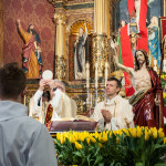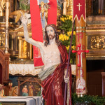 Niedziela wielkanocna rozpoczyna się już w sobotę. Rozpoczyna ją Wigilia Paschalna w sobotę po zachodzie słońca. Podczas wieczornej liturgii zapala się Paschał – wielką woskową świecę, która symbolizuje zmartwychwstałego Chrystusa. Poranną Mszę rezurekcyjną (łacińskie słowo resurrectio oznacza zmartwychwstanie) poprzedza uroczysta procesja z Najświętszym Sakramentem wyniesionym z grobu Pana Jezusa dla podkreślenia tajemnicy, że ten sam zmartwychwstały Chrystus jest obecny pod postaciami eucharystycznymi. Triumfalne bicie dzwonów ma przypomnieć trzęsienie ziemi towarzyszące zmartwychwstaniu. Idący w procesji ministranci niosą krzyż, figurę Zmartwychwstałego, a także zapalony paschał, kapłan zaś trzyma przed sobą monstrancję z Hostią. Wszyscy śpiewają pieśń „Wesoły nam dzień dziś nastał”, pochodzącą z XVII w. Tradycyjna procesja trzykrotnie okrąża kościół. Procesja kończy się odśpiewaniem dziękczynnego hymnu Ciebie, Boga, wysławiamy. Wielkanocną Mszę św. kapłani celebrują w białych szatach. Teksty liturgiczne są pełne radości ze zwycięstwa Pana Jezusa odniesionego nad śmiercią. Czytania biblijne przedstawiają świadectwo św. Piotra o zmartwychwstaniu Chrystusa (Dz 10, 34; 37-43), wezwanie do wierności „temu, co w górze” (Kol 3, 1-4) oraz relację o przybyciu kobiet i Apostołów do pustego grobu (J 20, 1-9). Symbolem zwycięskiego Jezusa jest figura Zmartwychwstałego z chorągwią w ręku, wystawiana aż do uroczystości Wniebowstąpienia. Wszyscy znają wyobrażenia baranka z chorągiewką, a przede wszystkim ozdobione jajka i kurczęta – znaki zwycięstwa życia nad śmiercią. Przesłanie to wiąże się również z tradycją dzielenia się poświęconym jajkiem w czasie świątecznego śniadania.