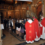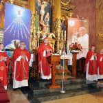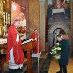 W czasie uroczystej Mszy św. której przewodniczył i homilię wygłosił JE Bp o. Jerzy Maculewicz, w koncelebrze uczestniczyli proboszcz parafii o. Sebastian Tracz, o. Roman Janusz, o Dawid Nowak i o. Adam Kruk. W swoich słowach Biskup o. Jerzy Maculewicz zaznaczył, że Bóg chce aby wasze serca były czyste, bo tylko do takiego serca Mogę wejść i obdarzyć Moją Miłością – zaznaczył kaznodzieja.