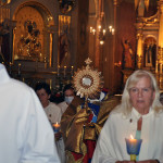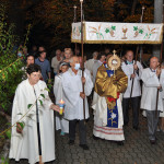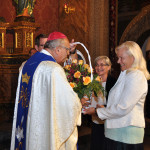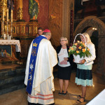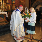 Parafianie nie zapomnieli o życzeniach dla jubilata wręczając kosz pięknych kwiatów. Uroczystość zakończyła procesja wokół kościoła z Najświętszym Sakramentem i błogosławieństwo.