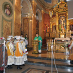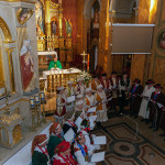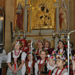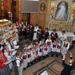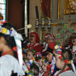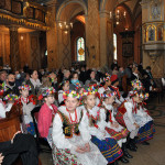 W niedzielę 24 października podczas Mszy Świętej o godz: 9.30, gościliśmy Zespół Pieśni i Tańca „Gołowianie”. Mszy Świętej przewodniczył i słowo Boże wygłosił proboszcz naszej parafii o. Sebastian Tracz. Zespół Pieśni i Tańca „Gołowianie” w tym roku obchodzi 45 rocznicę założenia. Powstał w Gołonogu w 1976 roku. „Gołowianie” funkcjonują w strukturach Pałacu Kultury Zagłębia w Dąbrowie Górniczej. Zespół wrósł w tradycję naszego miasta. Jest zespołem wielopokoleniowym, w którym babcie i dziadkowie spotykają się ze swoimi wnuczkami. Do tradycji Zespołu należy coroczne koncertowanie z okazji wyboru św. Jana Pawła II na tron papieski. W tym roku była to 45 rocznica tego wiekopomnego wydarzenia. „Gołowianie” zapraszani są na koncerty w różne miejsca z wielu innych okazji. Kierownikiem artystystycznym i chorografem jest Pani Małgorzata Kurtyka.