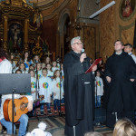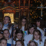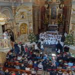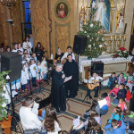 W niedzielę Chrztu Pańskiego – 7 stycznia 2018 r. po wieczornej Mszy świętej parafialny, dziecięcy zespół „Scholka Antolka” zaprosił wszystkich parafian oraz gości na swój pierwszy koncert kolęd i pastorałek. Na wstępie proboszcz parafii o. Radosław Kramarski powitał wszystkich przybyłych gości, w tym szczególnym miejscu, jakim jest to wzgórze gołonoskie, gdzie posługę kapłańską sprawują Franciszkanie. Przypomniał, że ten dziecięcy zespół, który od czterech lat zawsze o godz. 11.00 ubogaca liturgię Mszy świętej swoim śpiewem, wielbiąc Pana Boga. Śpiewem ,, Scholka Antolka ” przybliża nam piękno muzyki religijnej, uroku wykonywanym kolędom i pastorałkom dodaje doskonała oprawa muzyczna . W sposób szczególny pogłębia naszą wiarę, poprzez śpiew dwa razy się modlimy, bardziej miłujemy Boga i nie wstydzimy się tego wyznawać. To, że zespół może prezentować swój piękny repertuar i pasję śpiewania, zawdzięcza swoim rodzicom , ich determinacji, poświęcania wolnego czasu, wszczepienia im wiary w Pana Boga, którą otrzymali od swoich rodziców. Należą się podziękowania państwu Marcie i Rafałowi Sokolińskim i zespołowi muzycznemu za ich zaangażowanie od samego powstania ,, Scholki Antolka ” w systematycznej cotygodniowej pracy przy próbach z dziećmi, oraz posługi na Mszy Świętej w naszym Sanktuarium. Obecnością swoją zaszczycili wszystkich wiernych licznie zgromadzonych i rodziców dzieci: Pan Robert Warwas poseł na Sejm RP, Pan Zbigniew Podraza prezydent Miasta Dąbrowa Górnicza, Pani Agnieszka Pasternak Przewodnicząca Rady Miejskiej DG, Pan Zbigniew Piątek radny Rady Miejskiej DG, Pani Dorota Raczek Dyrektor Szkoły Podstawowej nr. 18 w Dąbrowie Górniczej.