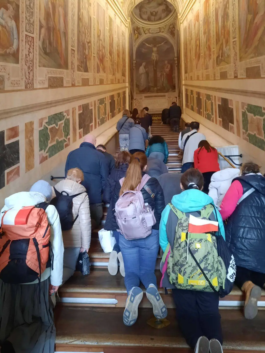 Asyż przywitał nas piękną pogodą co pozwoliło nam udać się do Porcjunkuli, małej kapliczki , we wnętrzu Bazyliki Matki Bożej Anielskiej pod Asyżem. Następnie zwiedziliśmy San Damiano, Greccio i inne miejsca z życia i działalności św. Franciszka. Szczątki św. Franciszka z Asyżu spoczywają w bazylice jego imienia (Sacro Convento) w Asyżu we Włoszech. Znajdują się one w kamiennym sarkofagu w krypcie pod ołtarzem głównym dolnego kościoła. W 2026 roku (w 800. rocznicę śmierci) relikwie zostały ekshumowane i wystawione na widok publiczny.