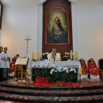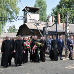 Przed Mszą świętą przedstawiciele duchowieństwa i władz złożyli kwiaty na placu apelowym, na którym św. Maksymilian zgłosił się na śmierć za współwięźnia, a także przy Ścianie Straceń na dziedzińcu bloku 11, gdzie Niemcy przeprowadzali egzekucje przez rozstrzelanie. W uroczystej Mszy Świętej przewodniczył i homilię wygłosił o. Jan Maciejowski Wikariusz Generalny z Rzymu, w koncelebrze z o. Tomaszem Leśniak Asystentem Generalnym(FEMO) oraz o. Marianem Gołąb Prowincjałem Prowincji Krakowskiej Franciszkanów Konwentualnych. Uczestniczyli również o. Zdzisław Kijas z Rzymu, o. Zdzisław Dzido z Niepokalanowa, o. Tadeusz Pobiedziński z Paragwaju, ks. Piotr Leśniak z Bielsko Białej, przedstawiciel MI Międzynarodowego, przedstawiciel MI z Hiszpanii oraz wielu innych kapłanów. W uroczystości uczestniczyła również rodzina krewnych św. Maksymiliana Kolbe państwo Joanna i Marek Wożniak. Podniosły charakter uroczystości podkreślała obecność jedenastu pocztów sztandarowych wspólnot Rycerstwa Niepokalanej. Po zakończonych uroczystościach pielgrzymi mieli okazję skorzystać z posiłku i napojów przygotowanych przez o. Franciszkanów z Harmęż.