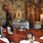 Również w naszym Sanktuarium św. Antoniego z Padwy uczestniczyliśmy w uroczystej Mszy św. której przewodniczył proboszcz naszej parafii o. Sebastian Tracz w koncelebrze ze współbraćmi w zakonie o. Romanem, o. Adamem, o. Piotr i o. Dawid, który wygłosił okolicznościowe kazanie. Uroczystość zakończyła procesja światła z figurą Matki Bożej Fatimskiej, w asyście pocztów sztandarowych.