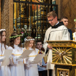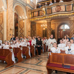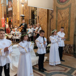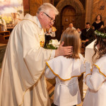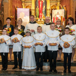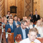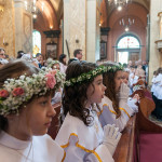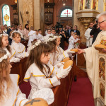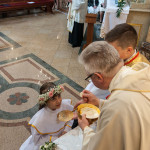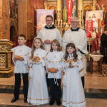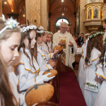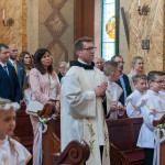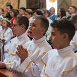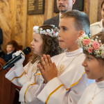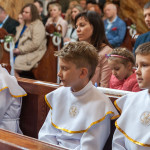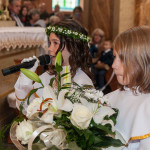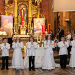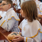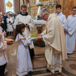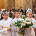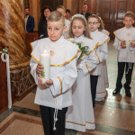 Słowo Boże skłania nas do zawierzenia życia i posłuszeństwa Boskiemu Pasterzowi, ale także tym, których wybrał i ustanowił, aby Mu towarzyszyli i w Jego imieniu działali. Dzień Pierwszej Komunii Świętej jest dla chrześcijanina jednym z najważniejszych w życiu. Rodzice, chrzestni czy krewni uczestniczący w uroczystości, nie powinni zaniedbywać okazji, aby razem z dzieckiem przystąpić w tym dniu do Stołu Pańskiego, ofiarowując Komunię św. w jego intencji. Od naszej roztropności w dużym stopniu będzie zależeć, jak dziecko przeżyje ten niezwykły dzień i jakie wspomnienia zachowa na całe życie. Przed rozpoczęciem Mszy świętej proboszcz naszej parafii Ojciec Radosław Kramarski powitał zgromadzonych w głównym wejściu do kościoła, a dzieci otrzymały błogosławieństwo rodziców. Po procesyjnym wejściu do świątyni i rozpoczęciu Mszy świętej przedstawiciele rodziców dzieci pierwszokomunijnych zwrócili się z prośbą do Ojca Proboszcza o udzielenie sakramentu Komunii Świętej. Kulminacyjnym momentem uroczystości była Komunia Święta, po niej dzieci złożyły podziękowania rodzicom, rodzicom chrzestnym, Ojcu Proboszczowi oraz Ojcu Piotrowi Wojnowskiemu – katechecie, Dyrekcji, nauczycielom oraz wręczyły im kwiaty. Jednak w pierwszej kolejności słowa wdzięczności i obietnica uczestnictwa w coniedzielnej Mszy świętej zostały skierowane ze strony dzieci do najważniejszej Osoby – Pana Jezusa, który w tym szczególnym dniu przyszedł do ich serc po raz pierwszy. W śród zaproszonych gości obecni byli także wychowawcy i Dyrekcja Szkoły Podstawowej Nr 18 oraz panie katechetki. Doniosły charakter tego uroczystego dnia podkreślił występ parafialnej „Scholki Antolka”.