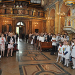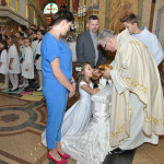W sobotę 12 maja dziewiętnaścioro uczniów ze Specjalnego Ośrodka Szkolno -Wychowawczego w Dąbrowie Górniczej i Społecznej Szkoły Podstawowej również z Dąbrowy Górniczej przyjęło Pierwszą Komunię Świętą. Uroczystość odbyła się w naszym Sanktuarium św. Antoniego z Padwy, której przewodniczył o. Radosław Kramarski proboszcz naszej parafii w koncelebrze z o. Romanem Janusz i o. Jackiem Bieleckim – katechetami dzieci pierwszokomunijnych. Dzień Pierwszej Komunii Świętej jest zawsze niezwykłym wydarzeniem, kiedy Pan Jezus przychodzi po raz pierwszy do dzieci, jest to wielkie święto dla nich i ich bliskich, jest to wielki krok na naszej drodze do łączności z Bogiem. Dla dzieci z niepełnosprawnością droga do przyjęcia Sakramentu może być dłuższa i trudniejsza, potrzebują więcej troski, specjalnego programu katechezy, ale z pomocą wychowawców, kapłanów i rodzin idą tą drogą, by w Sakramencie przyjąć do swego serca Pana nieba i ziemi. Wśród zaproszonych gości w uroczystości uczestniczyli: v-ce Dyrektor Pani Anna Caputa wraz wychowawcami Specjalnego Ośrodka Szkolno -Wychowawczego w Dąbrowie Górniczej, Dyrektor Pani Aleksandra Lipińska również z wychowawcami ze Społecznej Szkoły Podstawowej z Dąbrowy Górniczej oraz Pani Dorota Kucharczyk – katechetka.