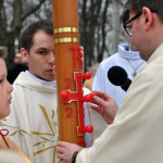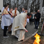 Liturgia Wielkiej Soboty oprócz Liturgii Słowa i Liturgii Eucharystycznej składa się z Liturgii Światła i Liturgii Chrzcielnej. Przed kościołem rozpala się ognisko. Kapłani, ubrani w białe, radosne szaty, służba liturgiczna i wierni stają wokół. Następuje poświęcenie ognia. Następnie przygotowuje się paschał. Wypowiadając słowa: “Chrystus wczoraj i dziś. Początek i koniec. Alfa i Omega. Do Niego należy czas i wieczność. Jemu chwała i panowanie przez wszystkie wieki wieków” – kapłan kreśli na paschale znak krzyża, litery Alfa i Omega oraz na polach między ramionami krzyża cyfry bieżącego roku, umieszcza też pięć symbolicznych gwoździ w formie krzyża, symbolizujące pięć ran Jezusa.