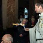 Zapalenie paschału, oznaczającego osobę Chrystusa, czyli Światłość Świata, uzmysławia nam raz jeszcze, że dokonała się Pascha, przejście z mroku do jasności, ze śmierci do życia. W uroczystej procesji paschał zostaje wniesiony do świątyni od którego wierni odpalają przyniesione świece symbol zmartwychwstania i umieszczony w ozdobnym świeczniku. Liturgię chrzcielną otwiera odśpiewanie Litanii do Wszystkich Świętych, podkreślającej jedność całego Kościoła. Kapłan poświęca wodę chrzcielną – tradycja zaleca, aby dokonało się to przy włożeniu paschału do naczynia z wodą; tekst błogosławieństwa przypomina odradzającą moc wody. Z zapalonymi świecami w ręku wierni wyrzekają się grzechu, wszystkiego, co prowadzi do zła, i szatana, głównego sprawcy grzechu, a następnie wyznają wiarę w Ojca, Syna i Ducha Świętego, Kościół, obcowanie świętych, odpuszczenie grzechów, zmartwychwstanie ciała i życie wieczne. Liturgię chrzcielną kończy modlitwa wiernych.