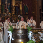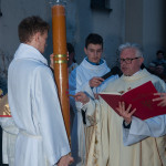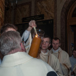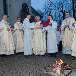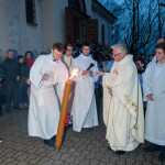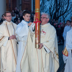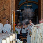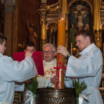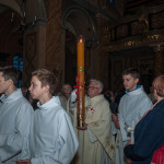 Liturgia Wielkiej Soboty rozpoczęła obchód Wielkiej Nocy Zmartwychwstania Pańskiego. W dawnej tradycji ta Noc, jest czuwaniem na cześć Zbawiciela. Każdy z nas trzymał w ręku zapaloną świecę, jest podobny do człowieka oczekującego na swojego Pana, aby, gdy powróci, zastał nas czuwających i zaprosił do swojego stołu. Wigilia Paschalna, która jest „matką wszystkich wigilii” składa się z czterech części: Liturgii Światła, Liturgii Słowa, Liturgii Chrzcielnej oraz Liturgii Eucharystycznej. Cały obchód jest niezwykle bogaty w symbole, które wskazują na głębię nowego życia; życia darowanego nam przez Boga w Jezusie Chrystusie. Obrzęd Wigilii Paschalnej rozpoczął się przy wejściu do kościoła. Kapłan poświęcił tam ogień, od którego następnie zapalił Paschał, symbol Chrystusa – Wiekuistej Światłości świata. Wypowiadając słowa: „Chrystus wczoraj i dziś. Początek i koniec. Alfa i Omega. Do Niego należy czas i wieczność. Jemu chwała i panowanie przez wszystkie wieki wieków” – kapłan kreśli na Paschale znak krzyża, litery Alfa i Omega oraz na polach między ramionami krzyża cyfry bieżącego roku, umieścił też pięć symbolicznych gwoździ w formie krzyża, symbolizujących pięć ran Jezusa. Przez cały okres wielkanocny Paschał umieszczony obok ołtarza będzie przypominał o obecności Chrystusa Zmartwychwstałego wśród nas. Kapłan wnosząc Paschał do kościoła, trzykrotnie zaintonował: „Światło Chrystusa”, na co wszyscy odpowiedzieli: „Bogu niech będą dzięki”, następnie wierni odpalali od Paschału przyniesione świece. Czuwajmy więc pełni nadziei, z wiarą przeżywając Paschę naszego Pana Jezusa Chrystusa czyli Jego przejście ze śmierci do życia, która za łaską Boga, stała się także naszą paschą.