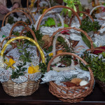 W Wielką Sobotę wierni przychodzą do świątyń, w których kapłani błogosławią pokarmy przeznaczone na świąteczny stół, czyli tzw. święcone (święconkę) – kończy się bowiem czas postu. Pokarmy te znajdą się później na stole wielkanocnym. Zwyczaj ten nawiązuje do wieczerzy paschalnej Izraelitów, którą spożywał również Chrystus w Wielki Czwartek.