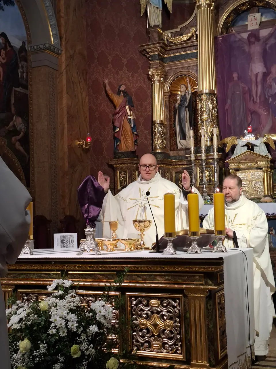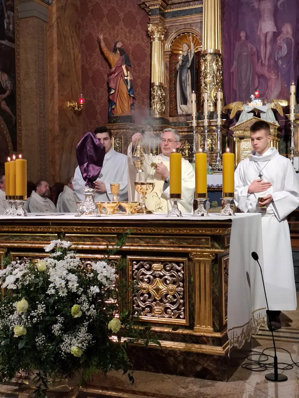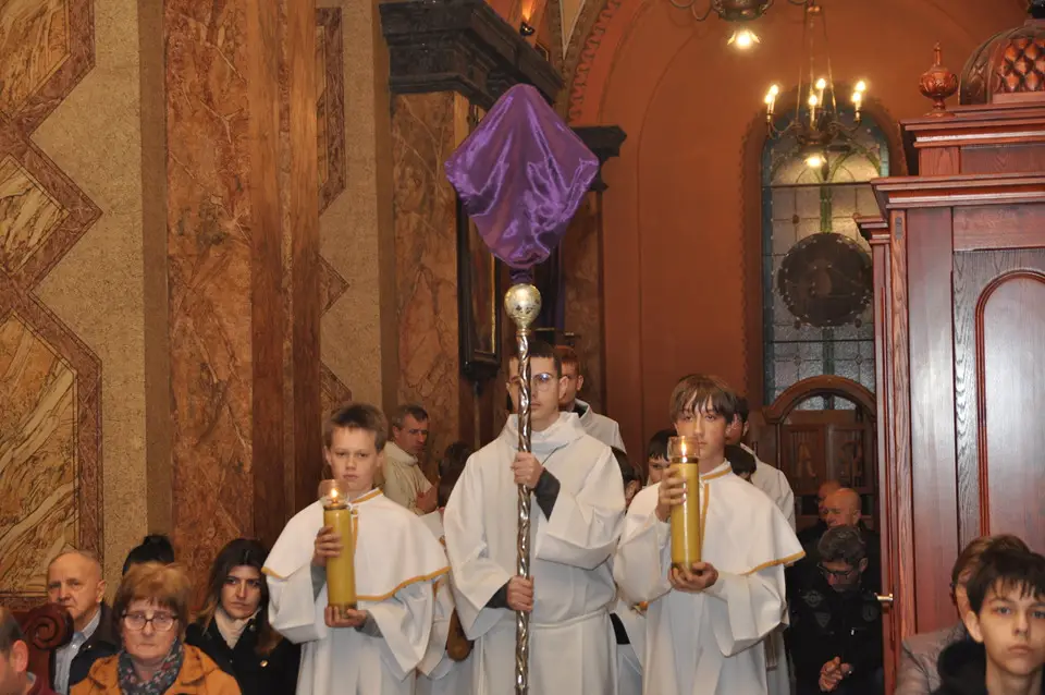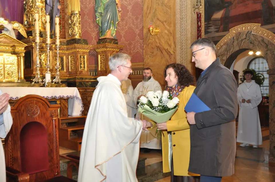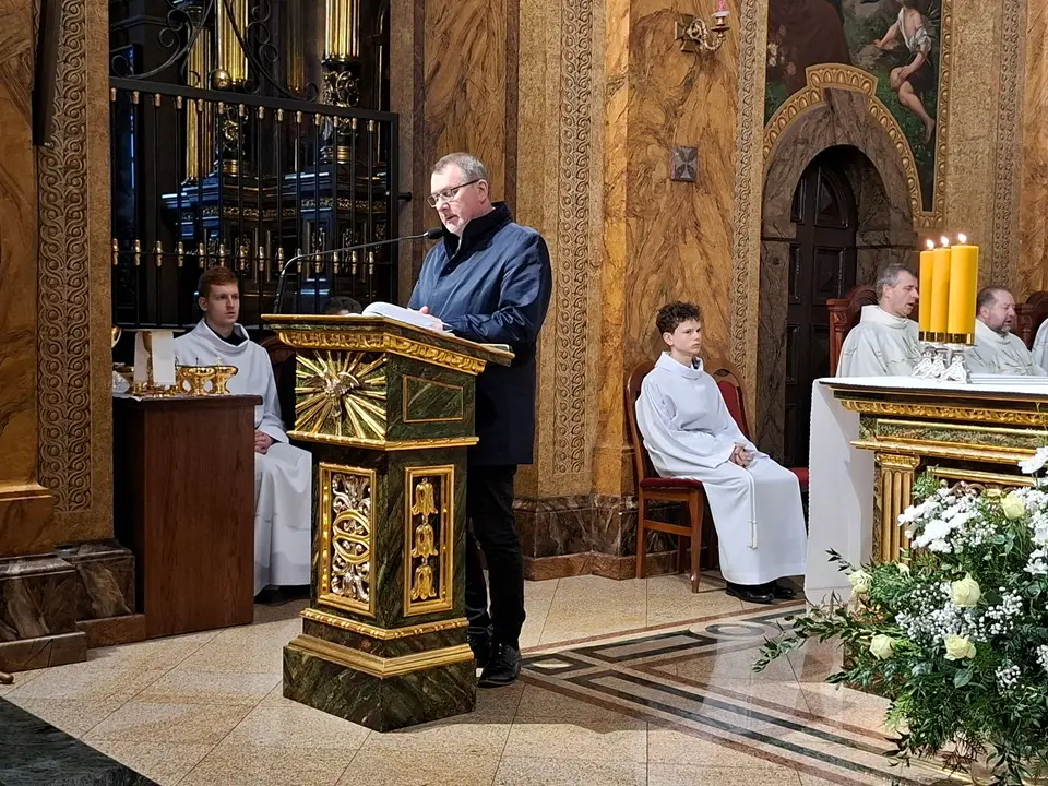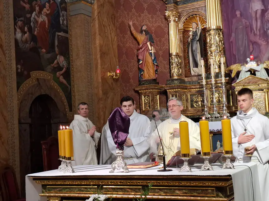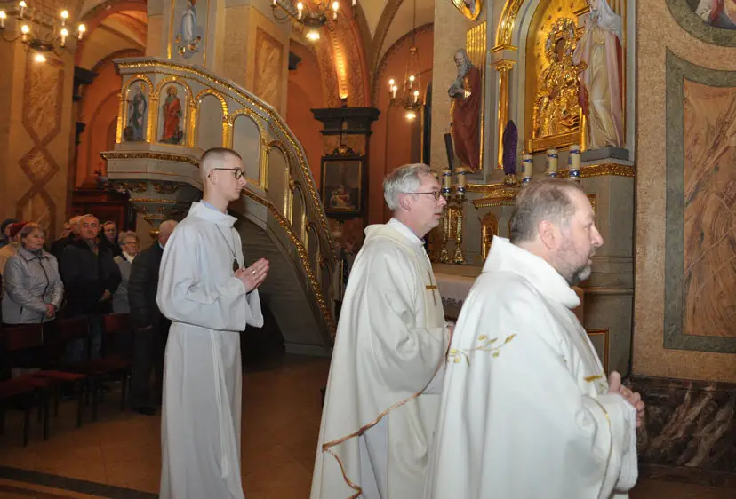 Uroczystej Eucharystii Wielkiego Czwartku przewodniczył i okolicznościowe słowo Boże wygłosił Prowincjał o. Mariusz Kozioł przełożony Zakonu Braci Mniejszych Konwentualnych w Krakowie w koncelebrze z o. Jan Maria Szewek OFMConv sekretarzem prowincjała, proboszczem naszej parafii o. Pawłem w wraz ze współbraćmi w kapłaństwie. Przedstawiciele wspólnot działających w parafii złożyli kwiaty na ręce Prowincjała o. Mariusza jako podziękowanie dla wszystkich kapłanów za ich posługę posłania w w Bożym powołaniu. Po zakończeniu Eucharystii, Najświętszy Sakrament został procesyjnie przeniesiony do Ciemnicy. Jest to moment przypominający nam wydarzenia, które nastąpiły po Ostatniej Wieczerzy: pojmania Jezusa, sądu u Annasza i Kajfasza, zaparcie się Piotra oraz nocnego czuwania w Ogrójcu.