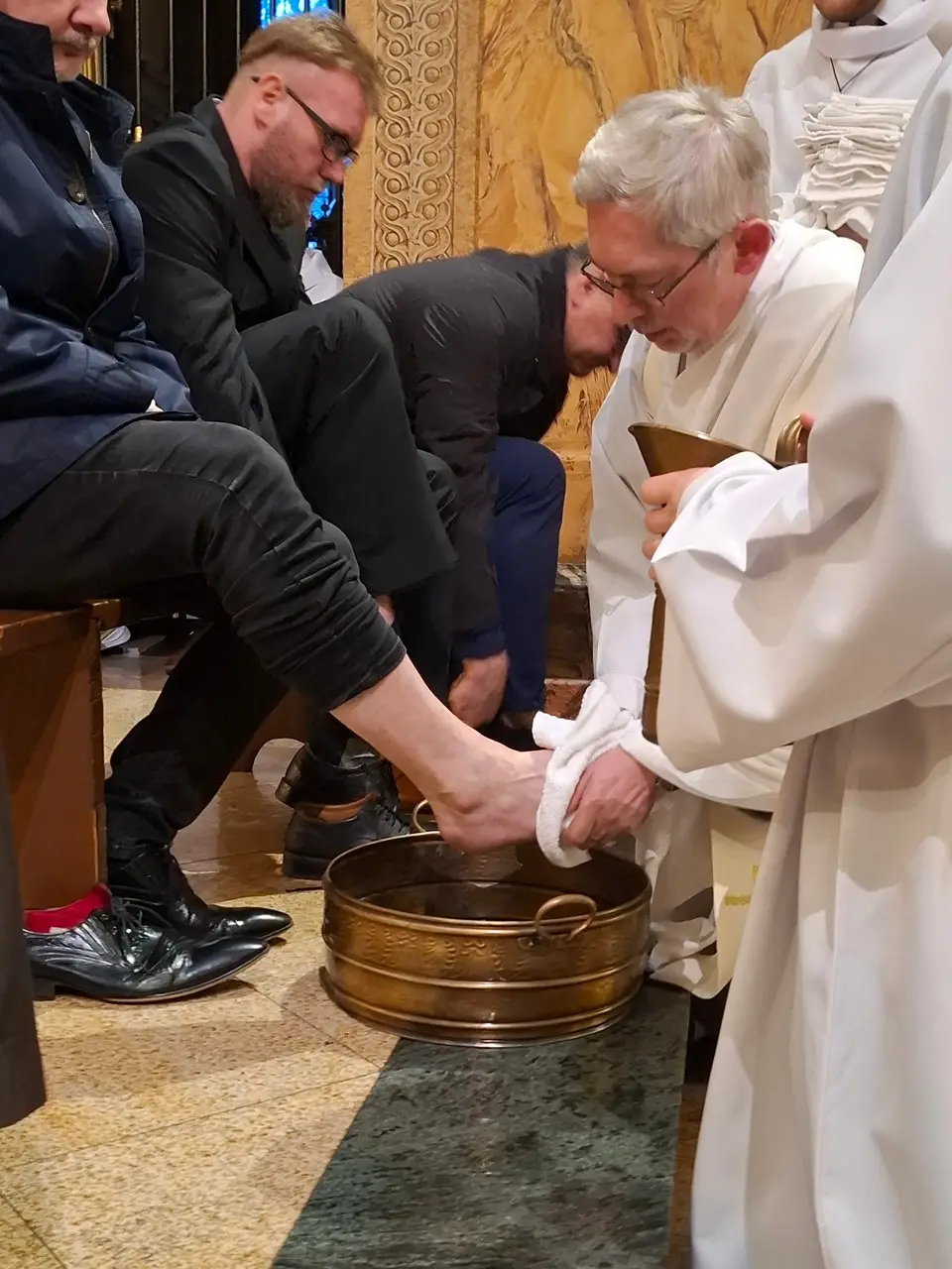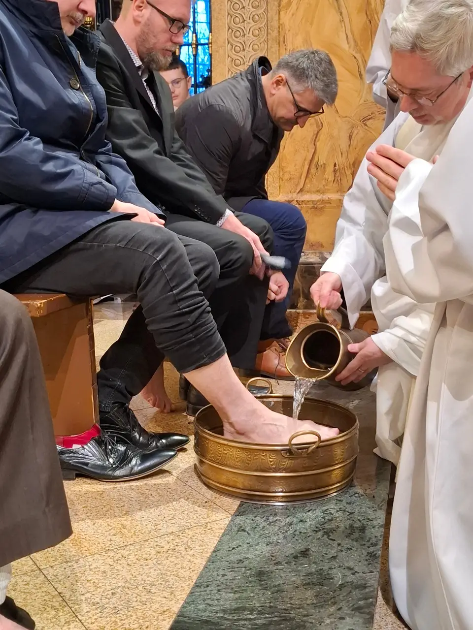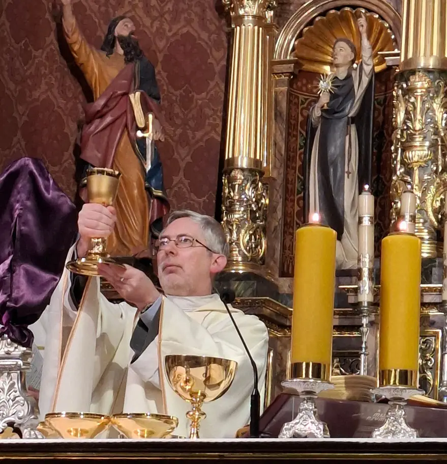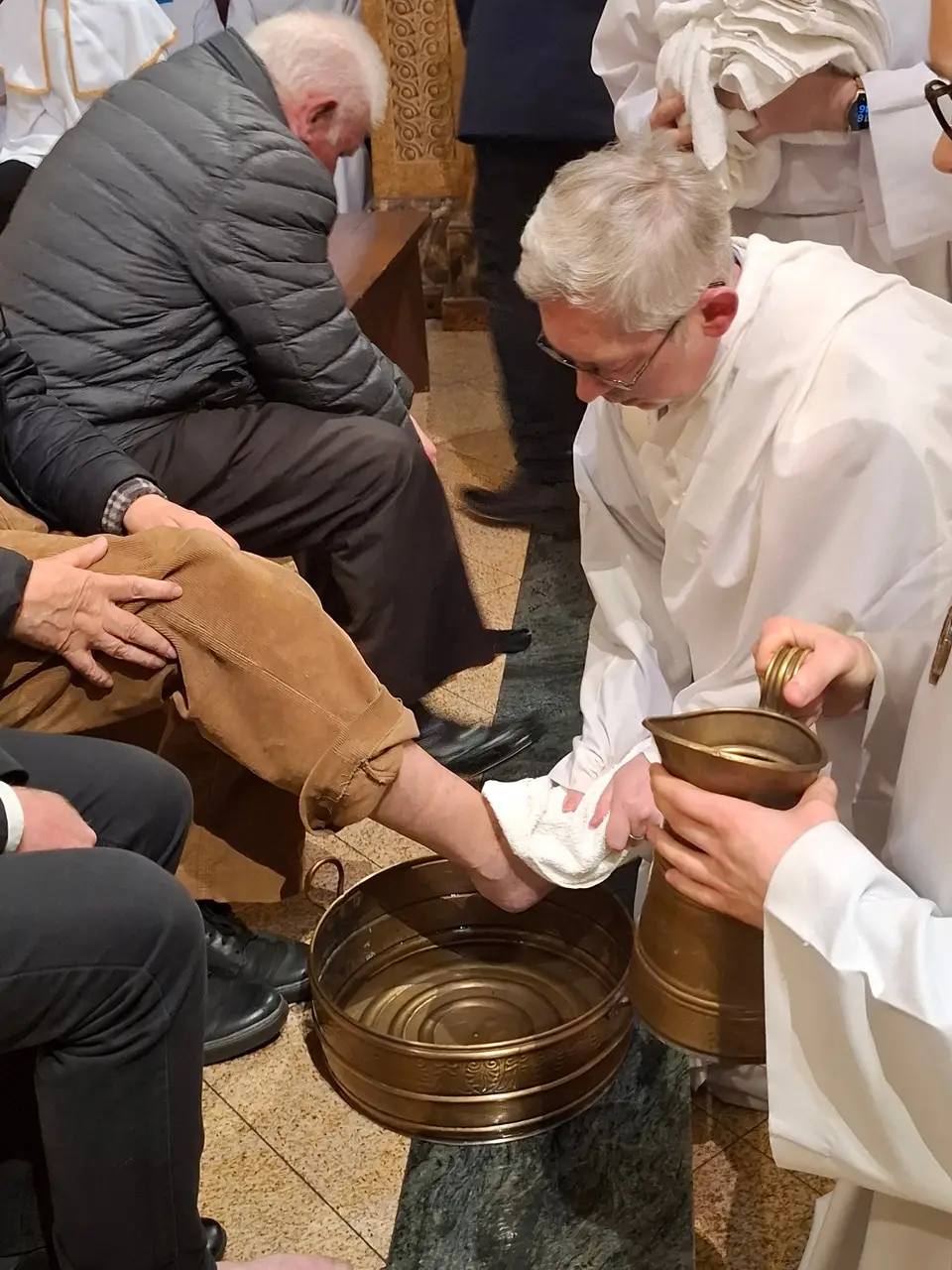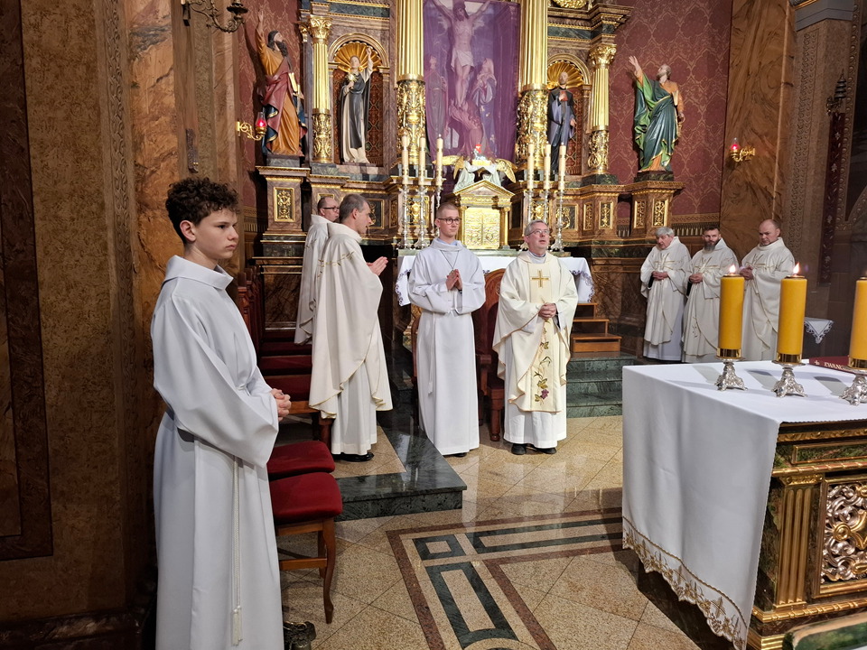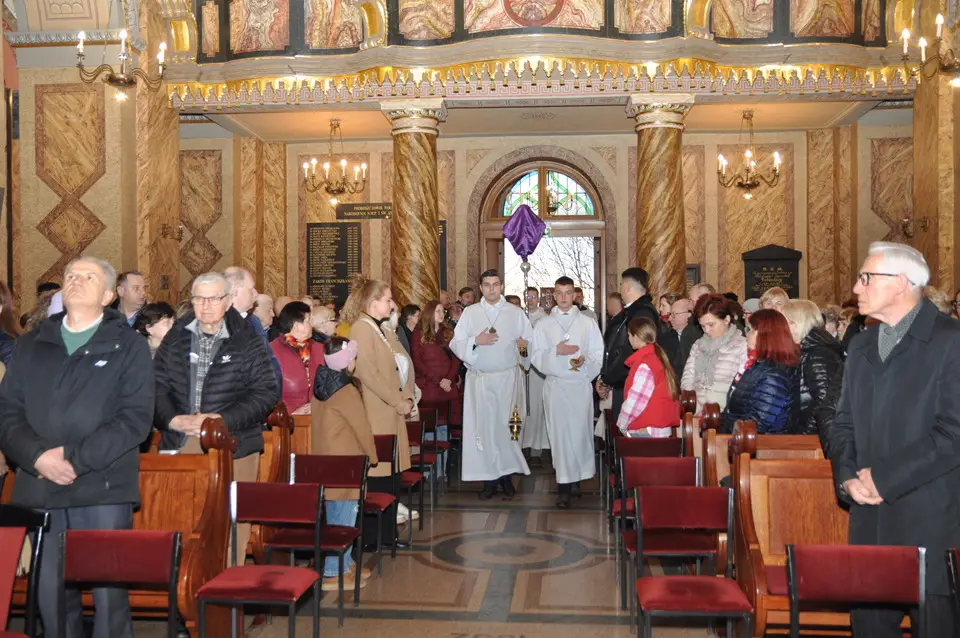 Uroczystej Eucharystii Wielkiego Czwartku przewodniczył i okolicznościowe słowo Boże wygłosił Prowincjał o. Mariusz Kozioł przełożony Zakonu Braci Mniejszych Konwentualnych w Krakowie w koncelebrze z o. Jan Maria Szewek OFMConv sekretarzem prowincjała, proboszczem naszej parafii o. Pawłem w wraz ze współbraćmi w kapłaństwie. Przedstawiciele wspólnot działających w parafii złożyli kwiaty na ręce Prowincjała o. Mariusza jako podziękowanie dla wszystkich kapłanów za ich posługę posłania w w Bożym powołaniu. Po zakończeniu Eucharystii, Najświętszy Sakrament został procesyjnie przeniesiony do Ciemnicy. Jest to moment przypominający nam wydarzenia, które nastąpiły po Ostatniej Wieczerzy: pojmania Jezusa, sądu u Annasza i Kajfasza, zaparcie się Piotra oraz nocnego czuwania w Ogrójcu.