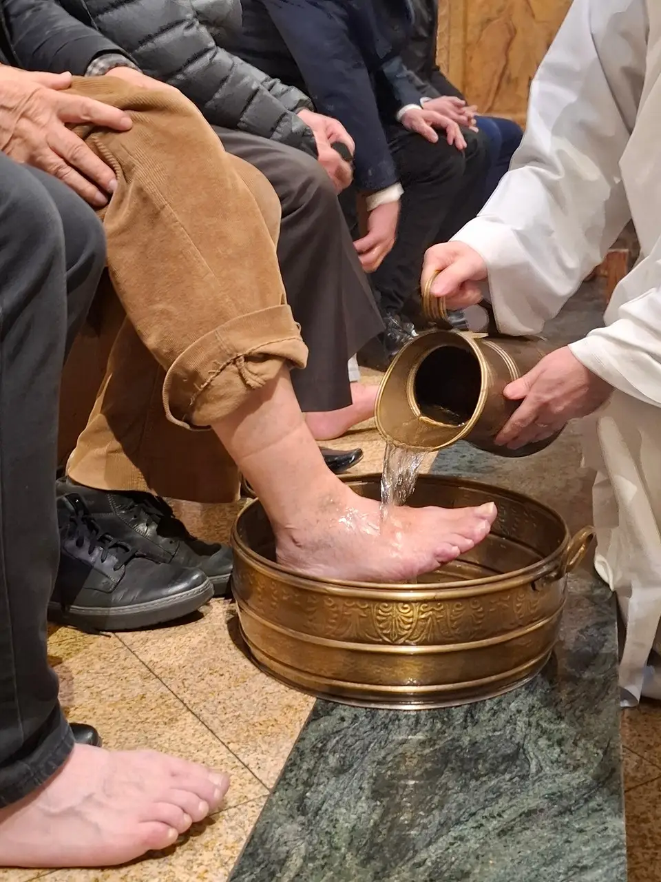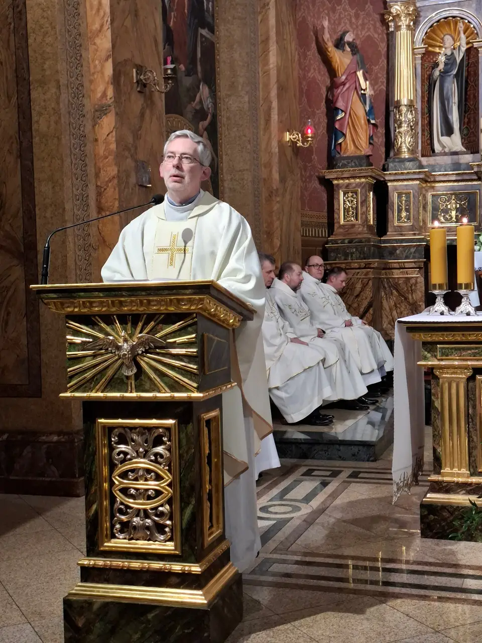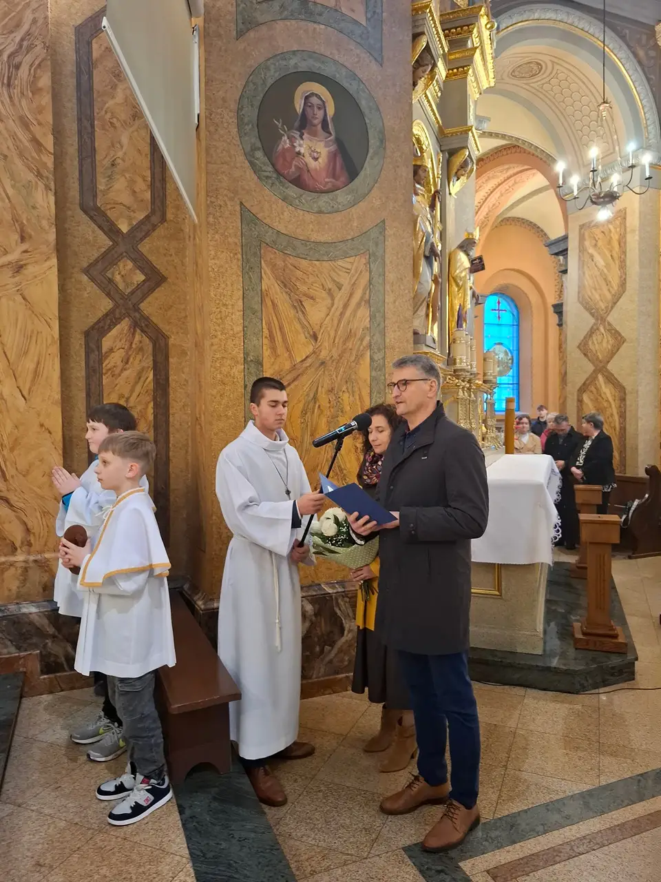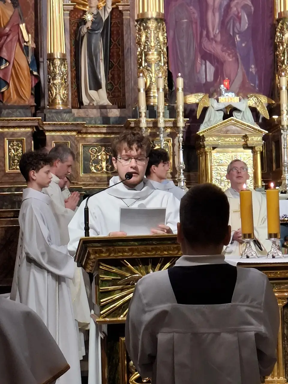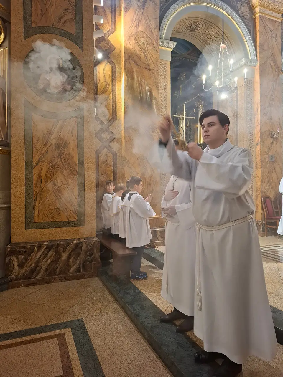 Uroczystej Eucharystii Wielkiego Czwartku przewodniczył i okolicznościowe słowo Boże wygłosił Prowincjał o. Mariusz Kozioł przełożony Zakonu Braci Mniejszych Konwentualnych w Krakowie w koncelebrze z o. Jan Maria Szewek OFMConv sekretarzem prowincjała, proboszczem naszej parafii o. Pawłem w wraz ze współbraćmi w kapłaństwie. Przedstawiciele wspólnot działających w parafii złożyli kwiaty na ręce Prowincjała o. Mariusza jako podziękowanie dla wszystkich kapłanów za ich posługę posłania w w Bożym powołaniu. Po zakończeniu Eucharystii, Najświętszy Sakrament został procesyjnie przeniesiony do Ciemnicy. Jest to moment przypominający nam wydarzenia, które nastąpiły po Ostatniej Wieczerzy: pojmania Jezusa, sądu u Annasza i Kajfasza, zaparcie się Piotra oraz nocnego czuwania w Ogrójcu.