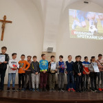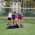 Po południu odbył się turniej piłki nożnej w trzech kategoriach wiekowych: klasy 3-5 Szkoły Podstawowej, klasy 6-8 Szkoły Podstawowej oraz kategoria Szkół Średnich. W najmłodszej kategorii wiekowej reprezentowały nas dwie drużyny i zajęły trzecie oraz szóste miejsce. Natomiast w średniej kategorii wiekowej dotarliśmy do finału, gdzie po zaciętej rywalizacji przegraliśmy 0:1 z ministrantami z Kalwarii Pacławskiej koło Przemyśla.